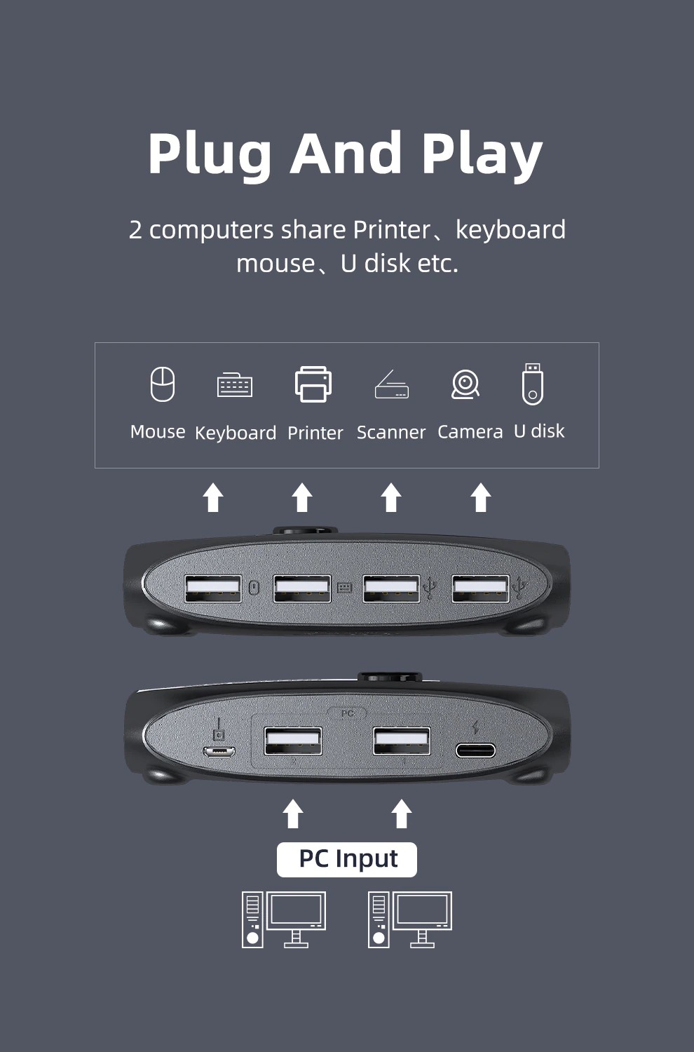 USB sharing switch 2 in 4 out