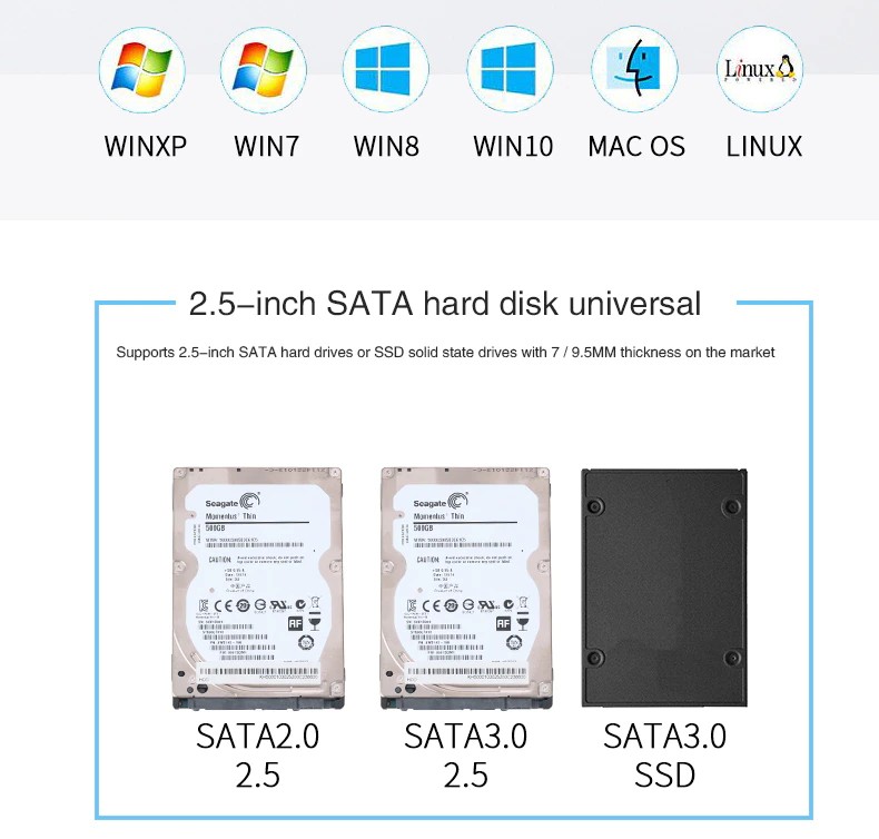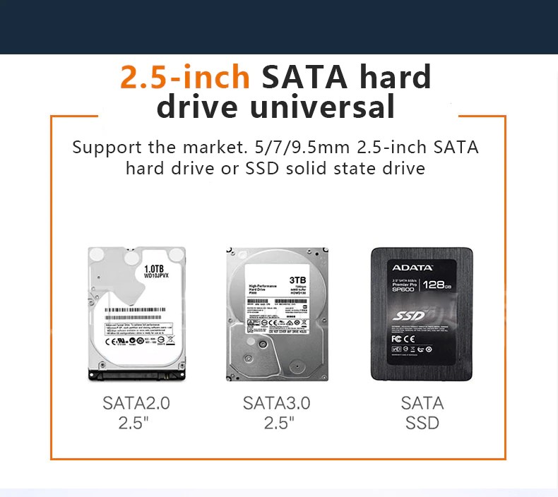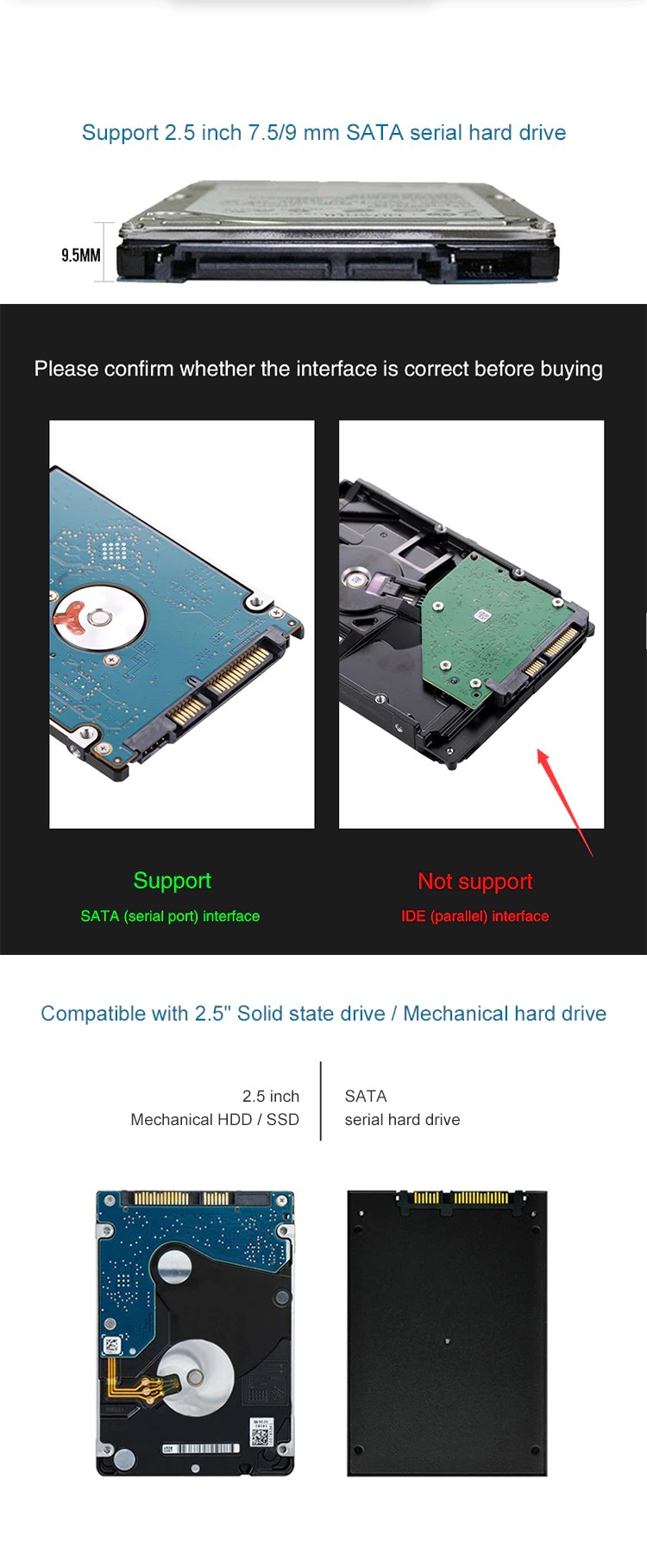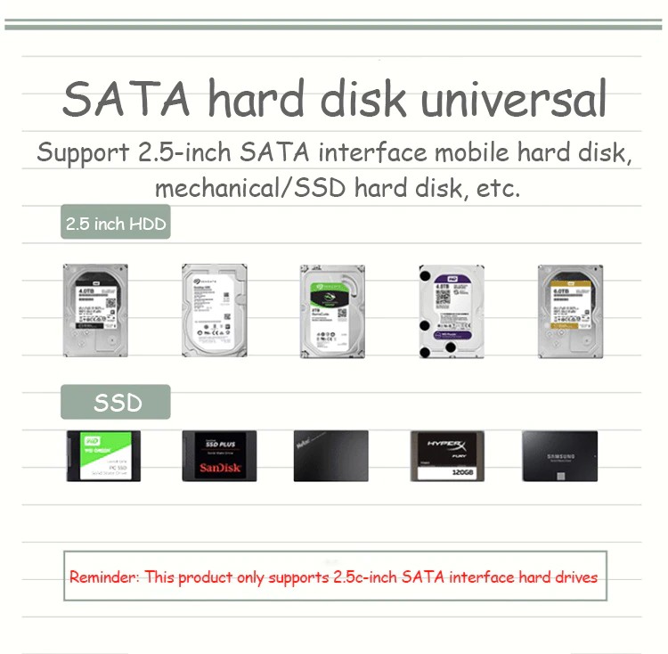 10. Supports all kinds of 2.5" SATA mechanical hard drives and solid state drives (SSD)