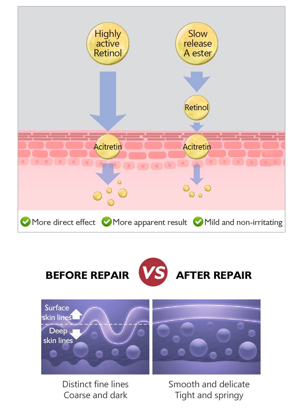 Double retinol essence,highly active ingredients, mild and effective for lines fading and wrinkle-resisting