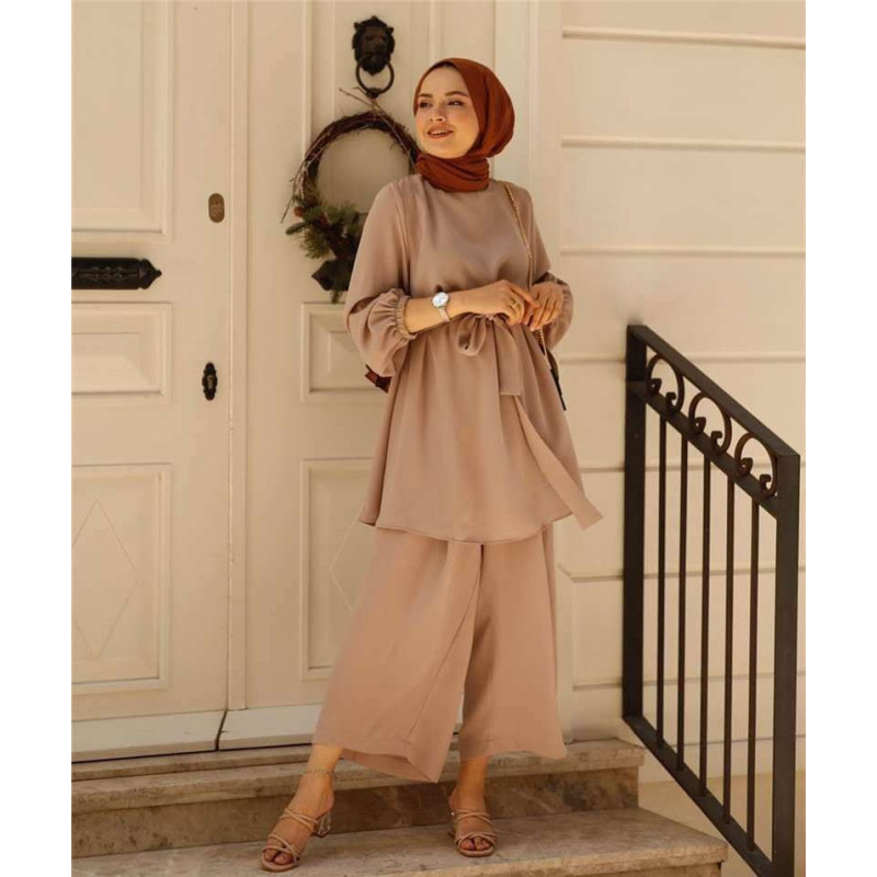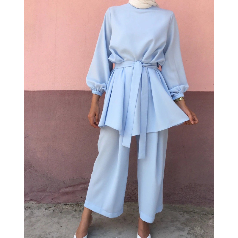 Wepbel Muslim Women Arab Suit Fashion Long Sleeve Tops + Wide Leg Pants Islamic Two Piece Set Outfits Female Blouses Women Sets