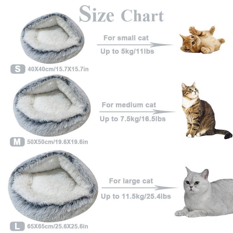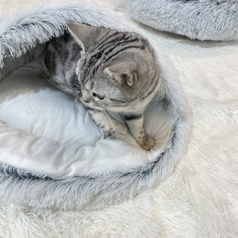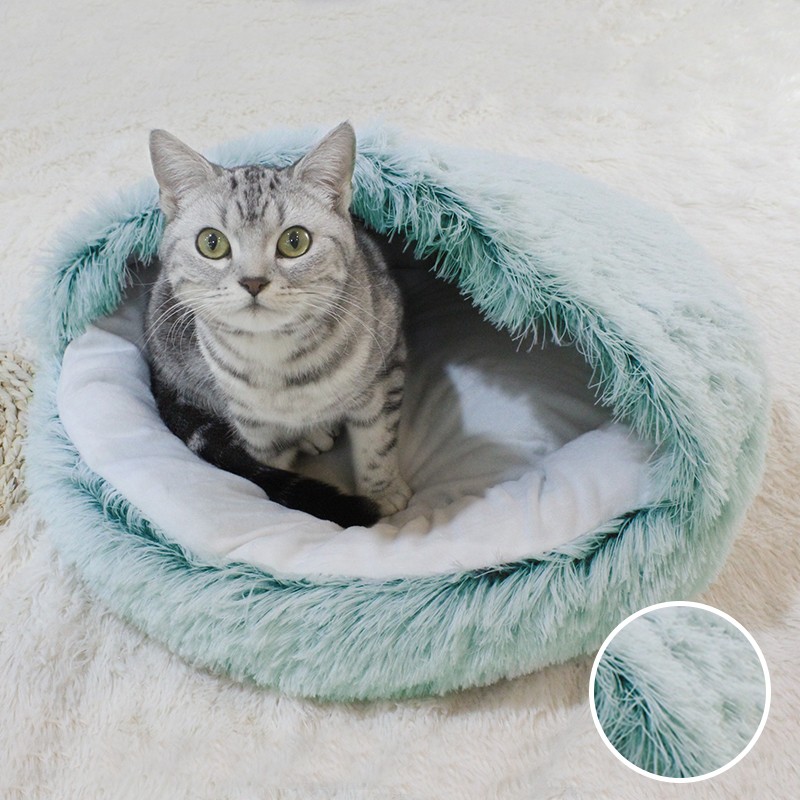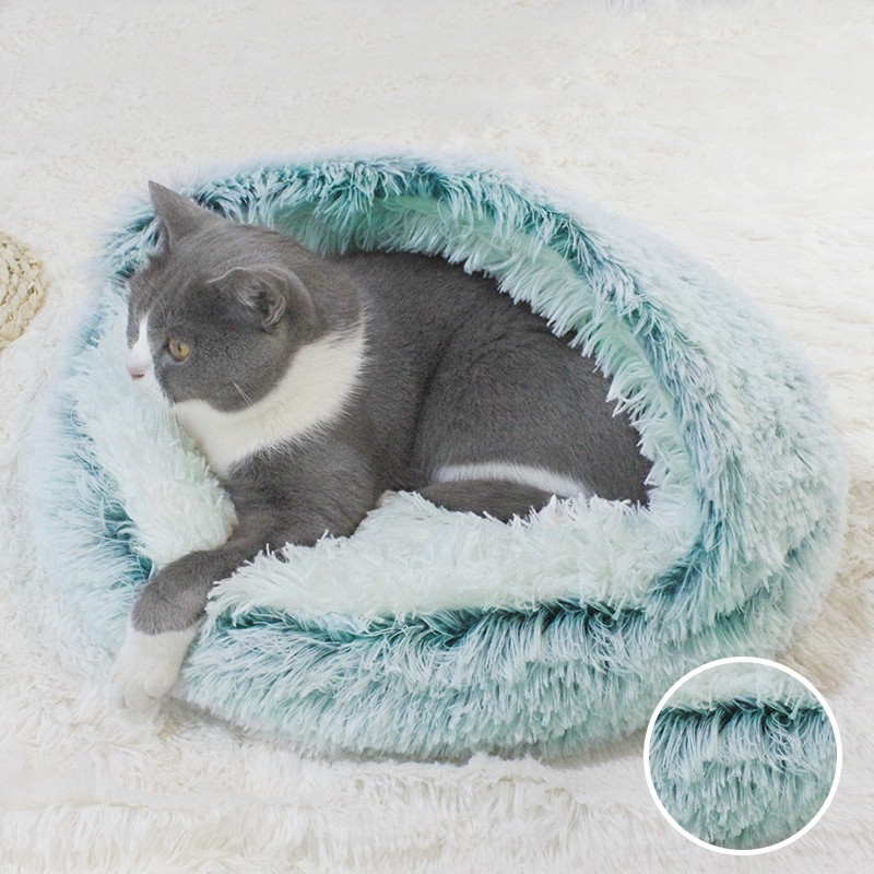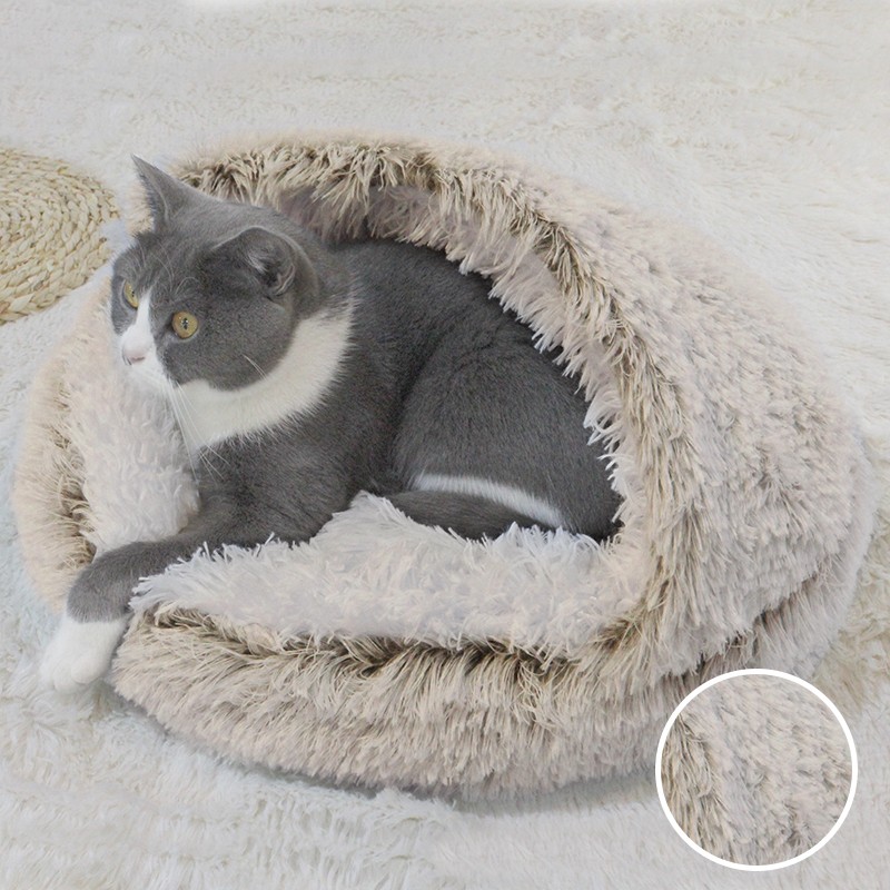 Winter Long Plush Pet Cat Bed Round Cat Cushion Cat House 2 In 1 Warm Cat Basket Cat Sleep Bag Cat Nest Kennel For Small Dog Cat