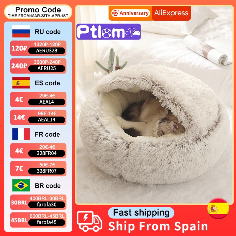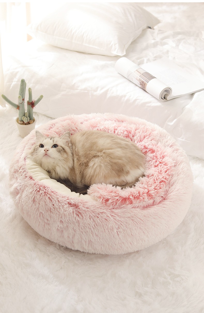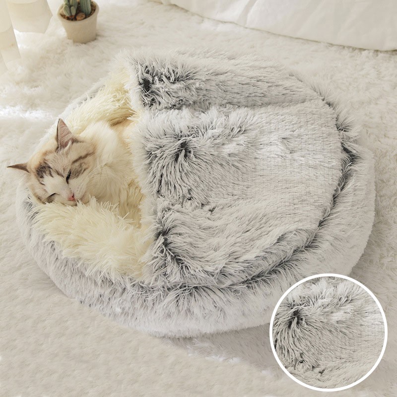 Winter Long Plush Pet Cat Bed Round Cat Cushion House 2 In 1 Warm Basket Sleep Bag Nest For Small Dog Cat