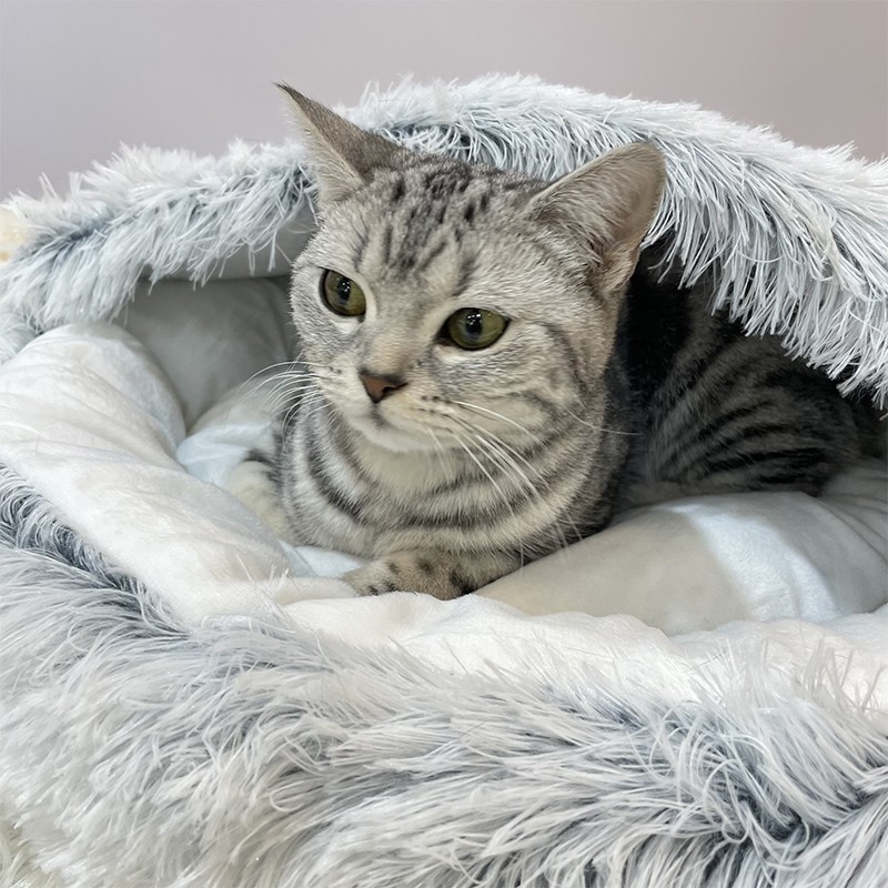 3.Use ways the entrance can open for easy access. A furry pet can have a nice rest there with the warm cozy plush cover. Or you can fold it down as a normal pet bed without the warm cover.