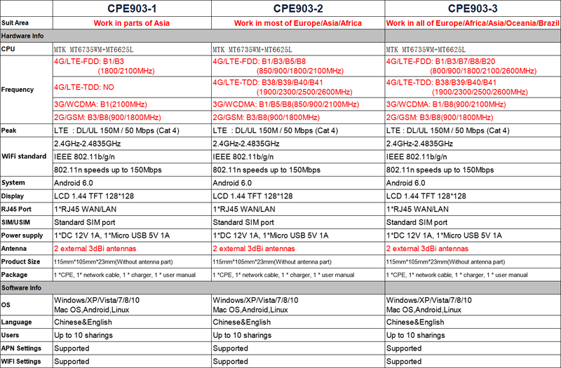 In order to get a better experience when you use the router. We suggest to buy CPE903-3 if you are from Russia, South Kerea, Europe, Asia, Africa or Brazil.