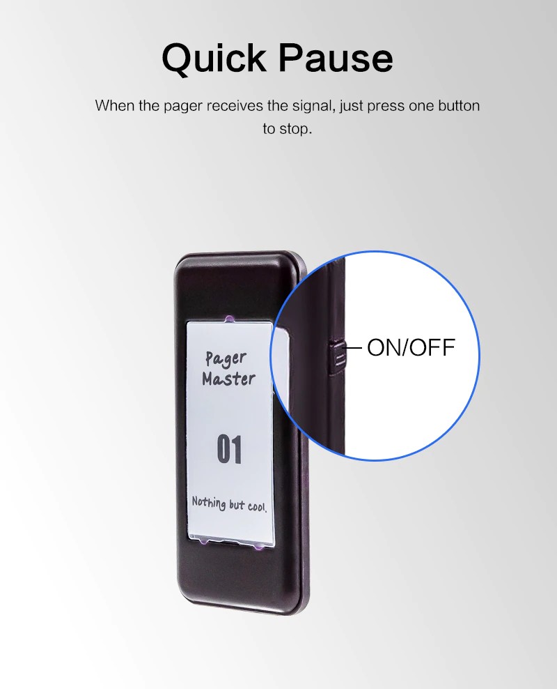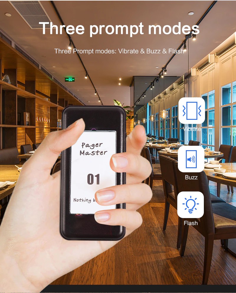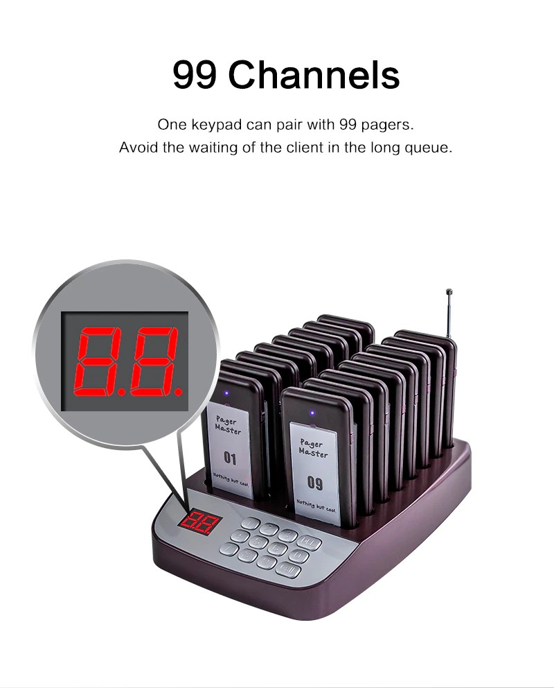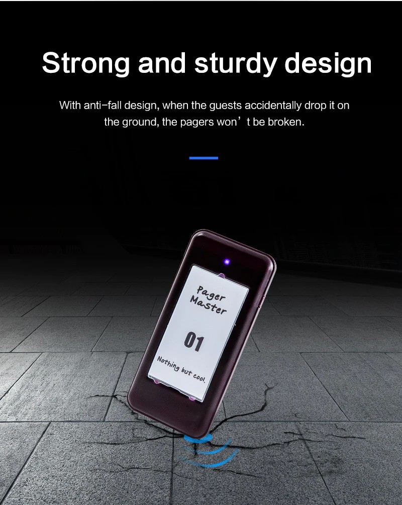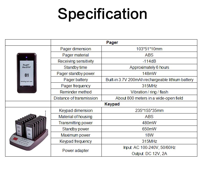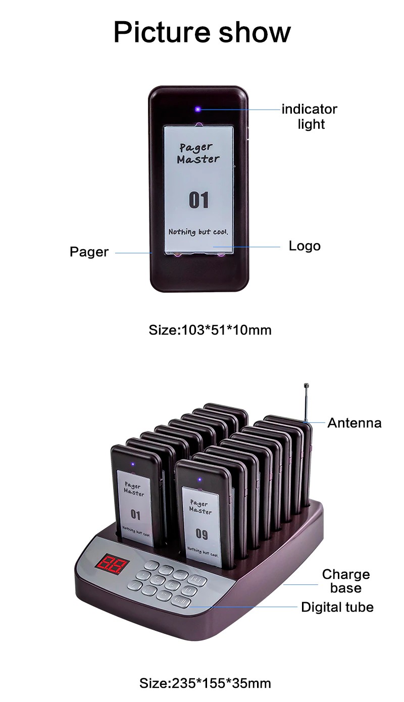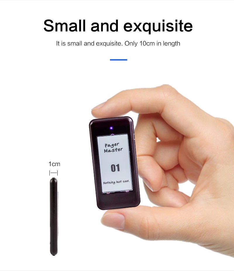Pager battery: Built-in 3.7V 200mAh rechargeable lithium battery
