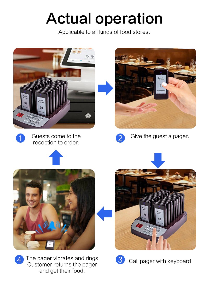 Wirelesslinkx Restaurant Pager Wireless Paging Guest Calling System For Cafe Shop Church Food Truck / Court