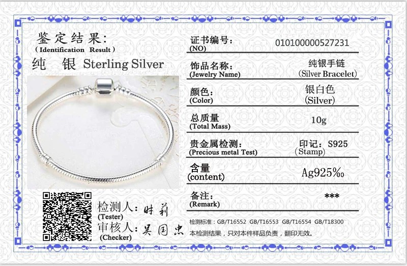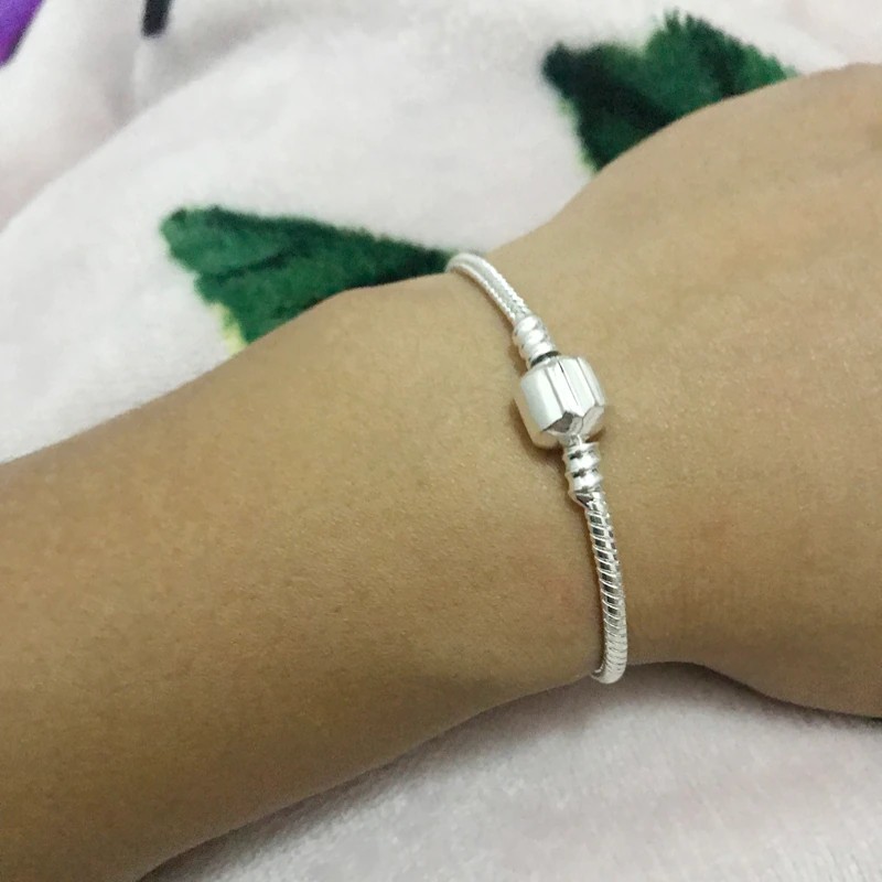 With Certificate 100% Original 925 Sterling Silver Snake Chain Diy Charm Bracelet For Women Gift Silver 925 Jewelry Lhb925
