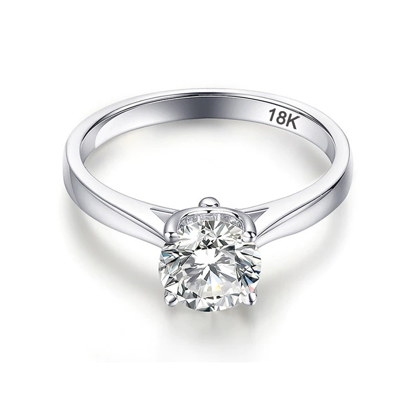 With Certificate 18K White Gold Rings For Women 2.0Ct Round Cut Diamond Ring Wedding Band Engagement Bridal