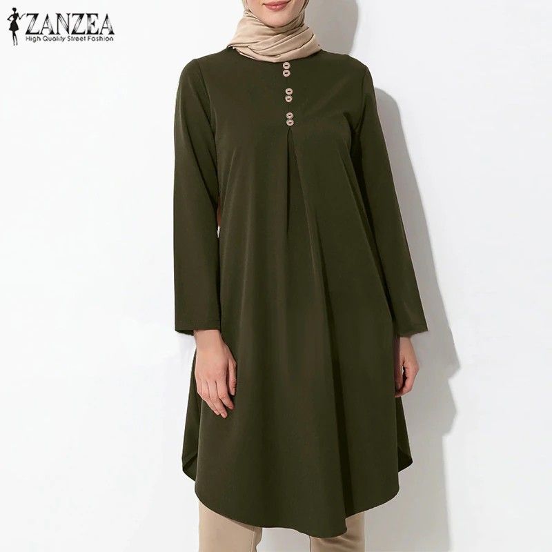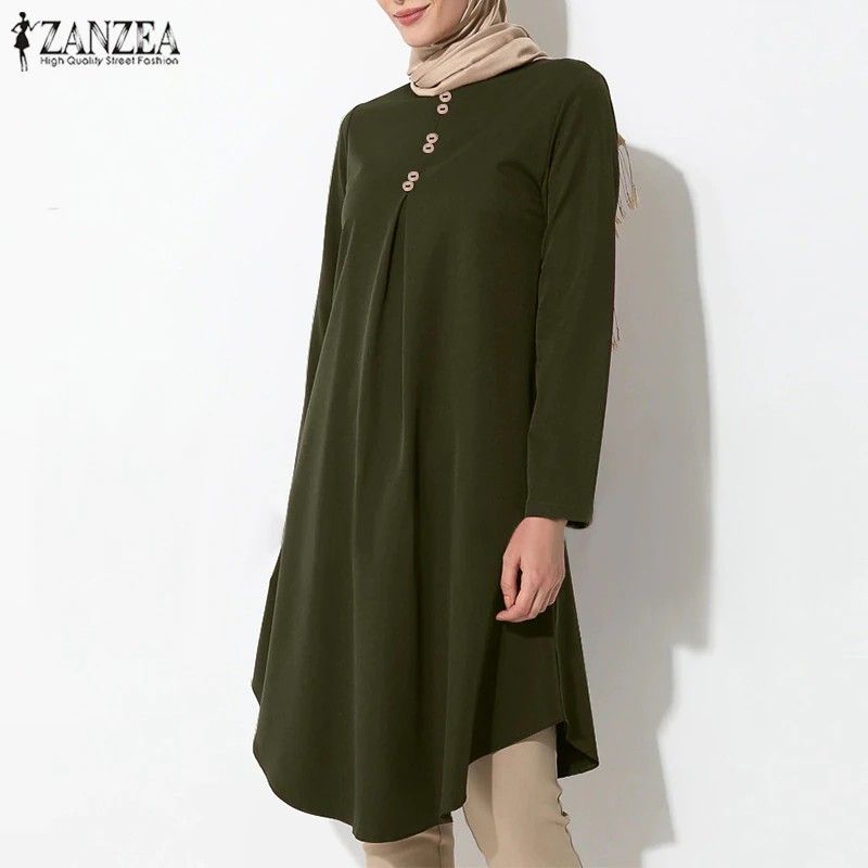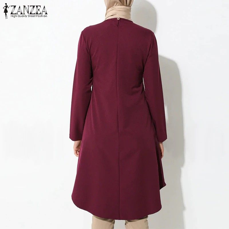 Women'S Asymmetrical Blouse Zanzea Newest Vintage Muslim Long Shirt Casual Long Sleeve Blusas Female Button Tops Tunic