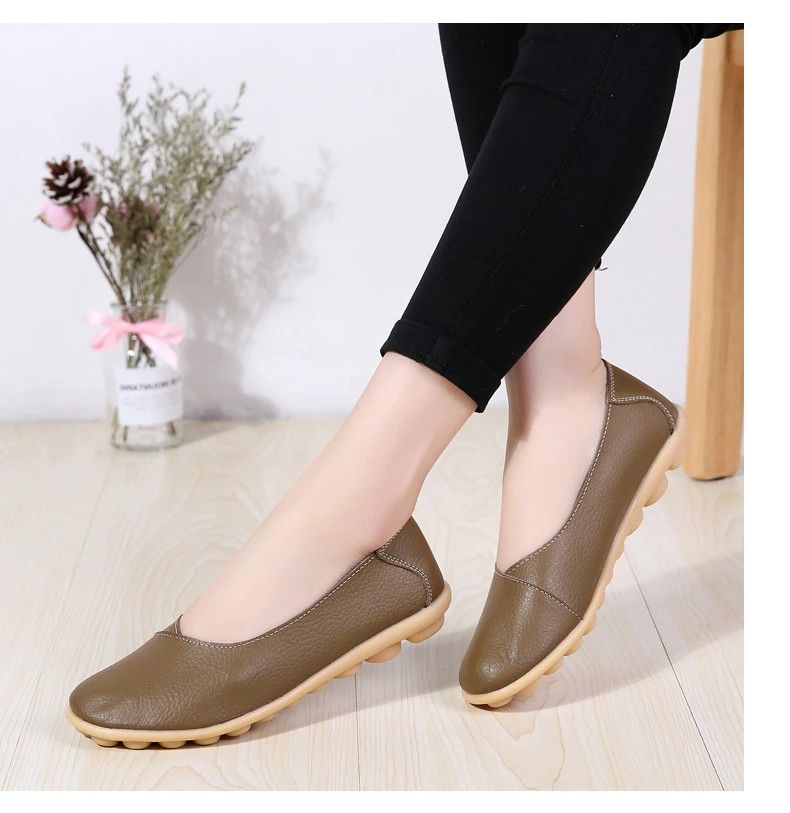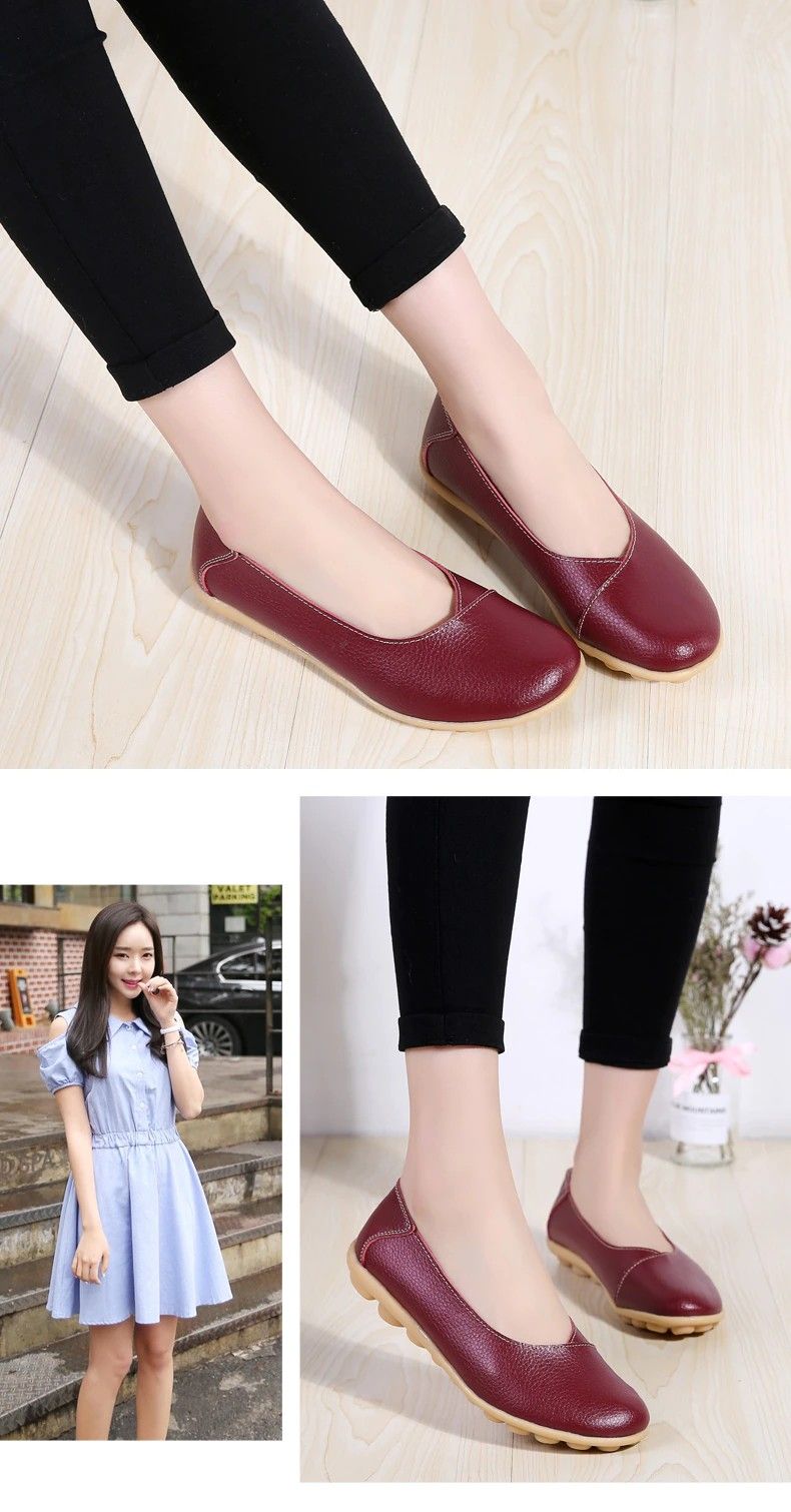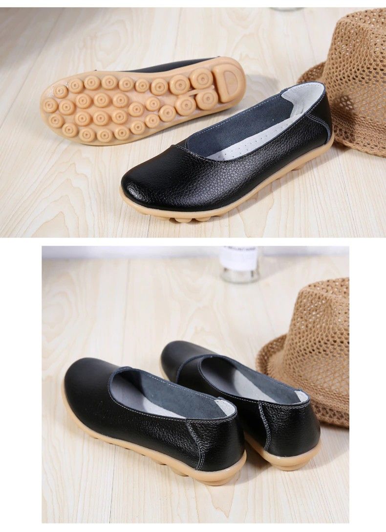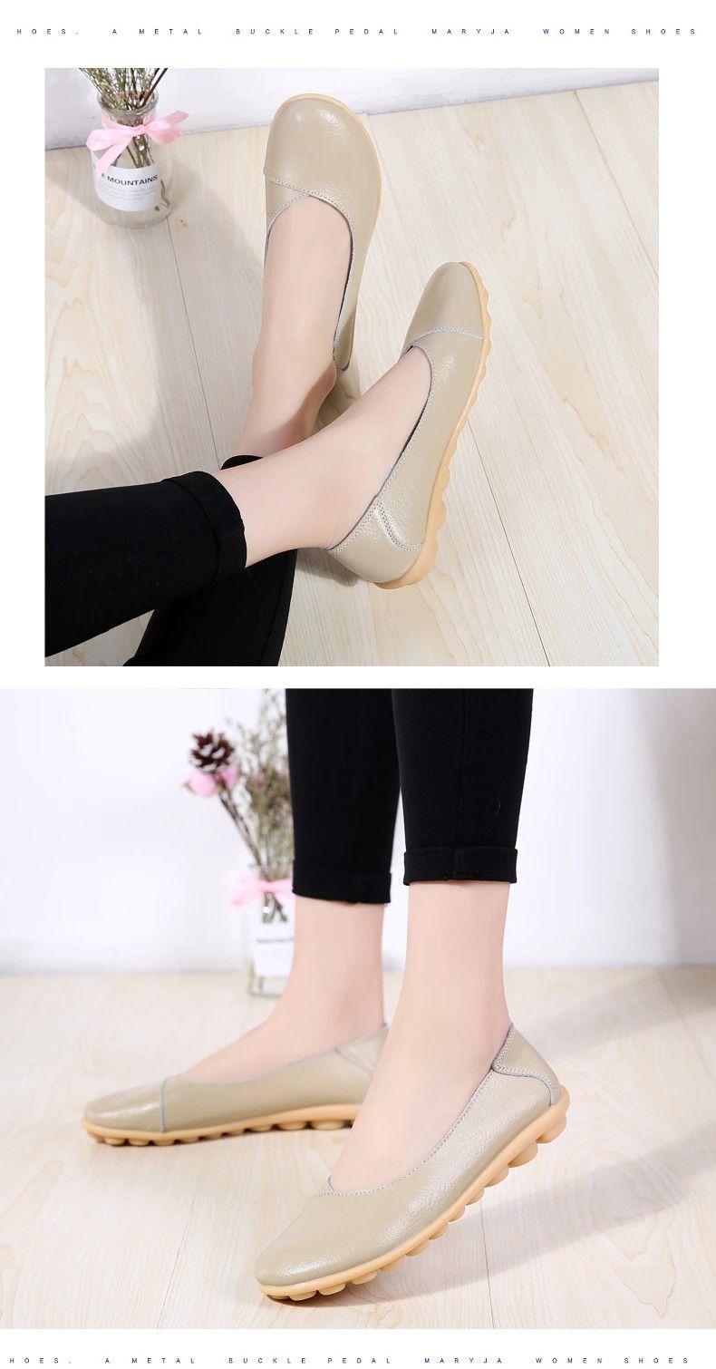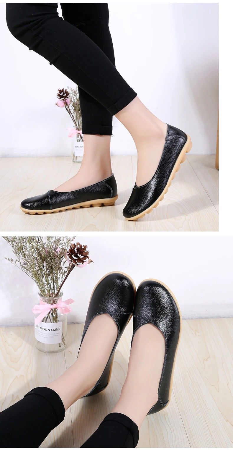 Women'S Ladies Female Woman Shoes Flats Mother Shoes Cow Genuine Leather Loafers Ballerina Non Slip On Zapatillas Woman Ballet