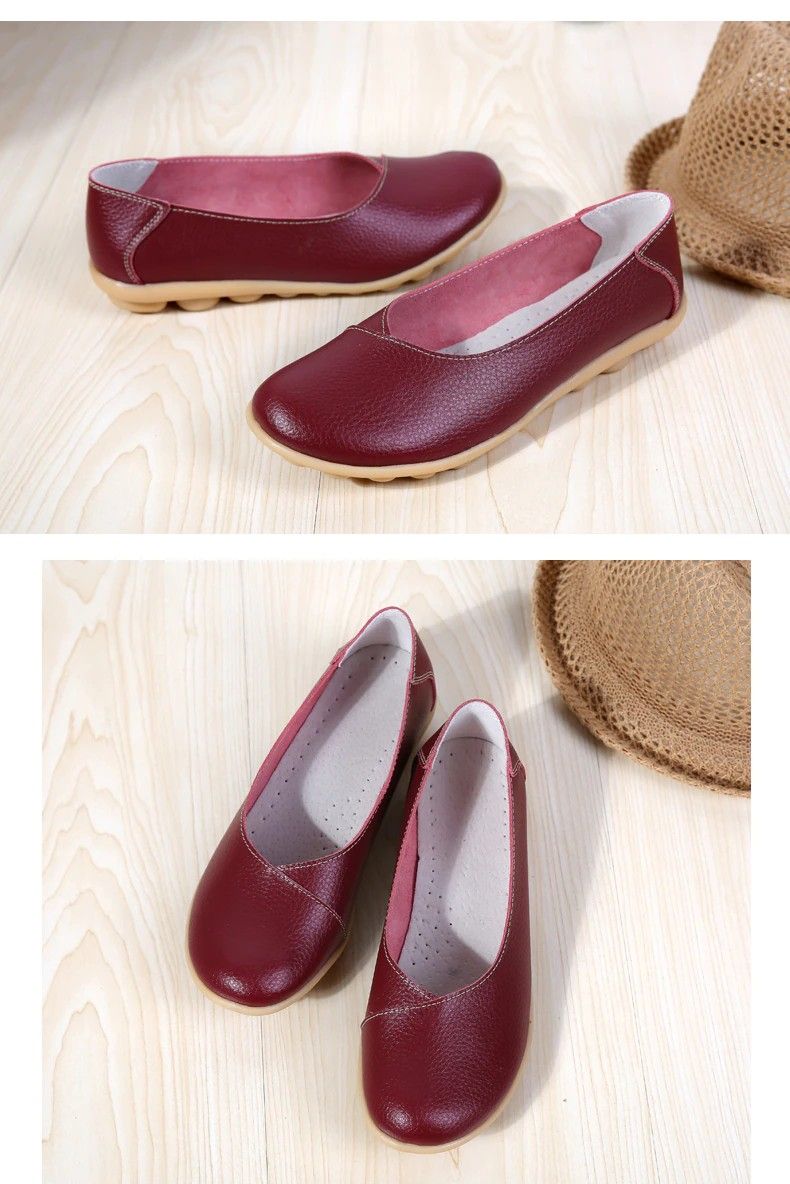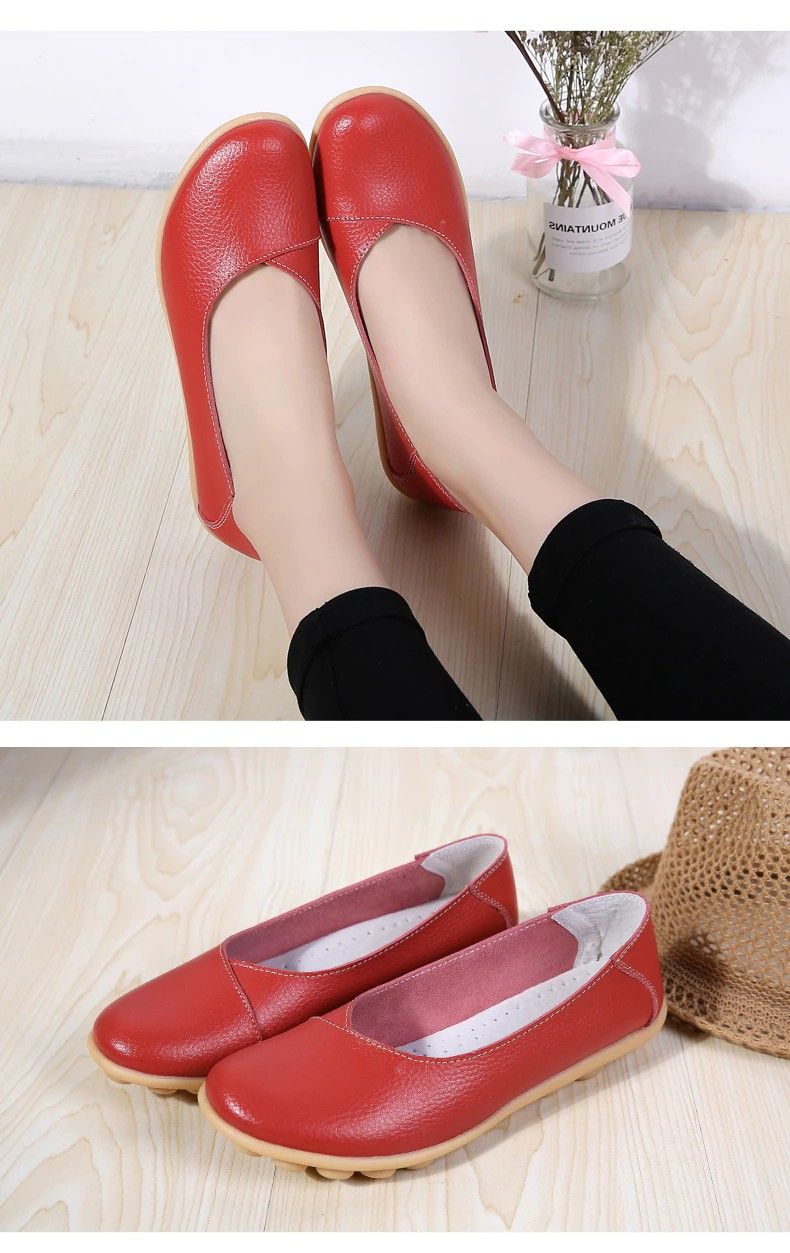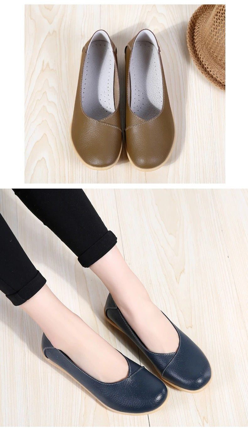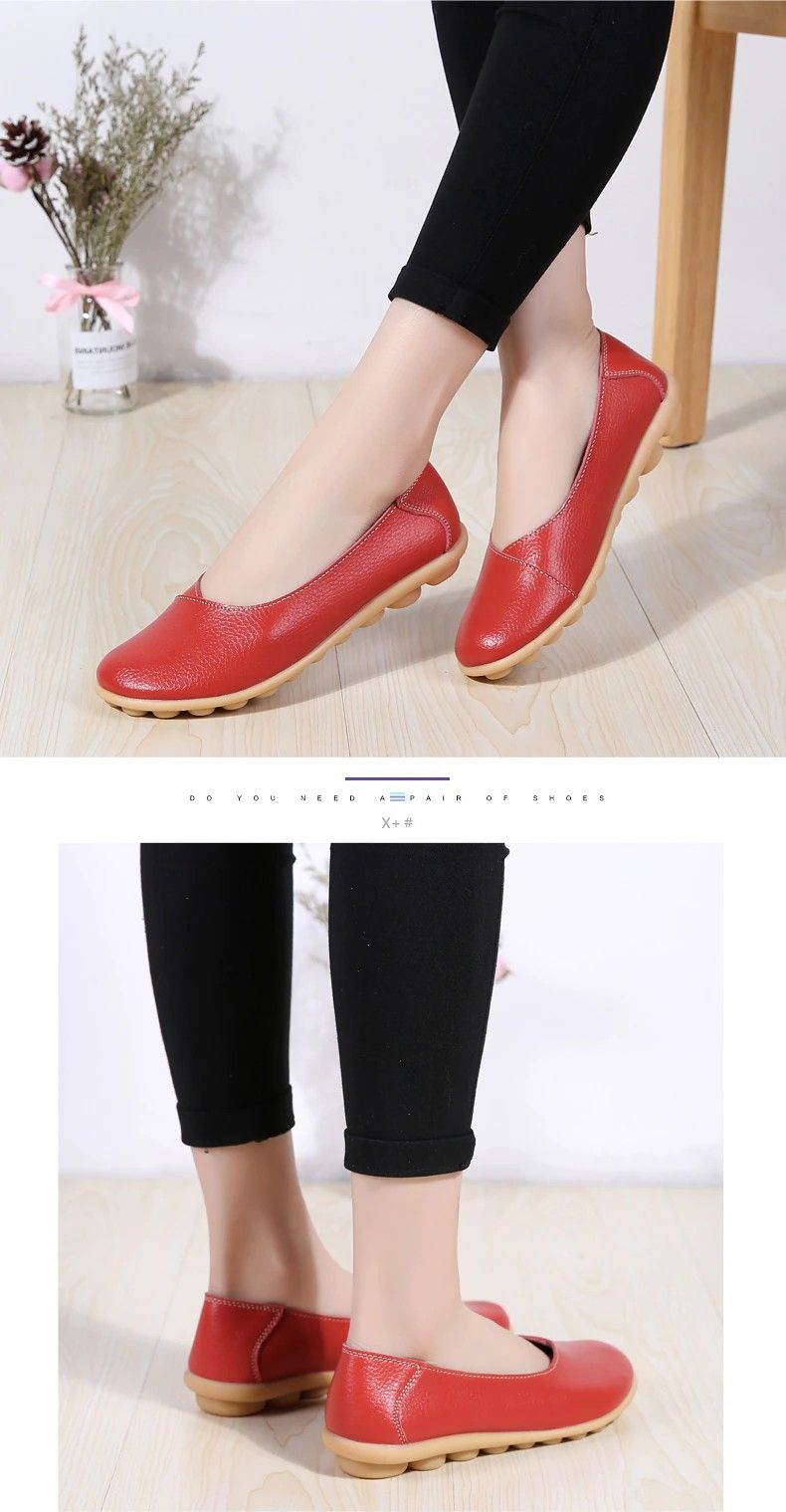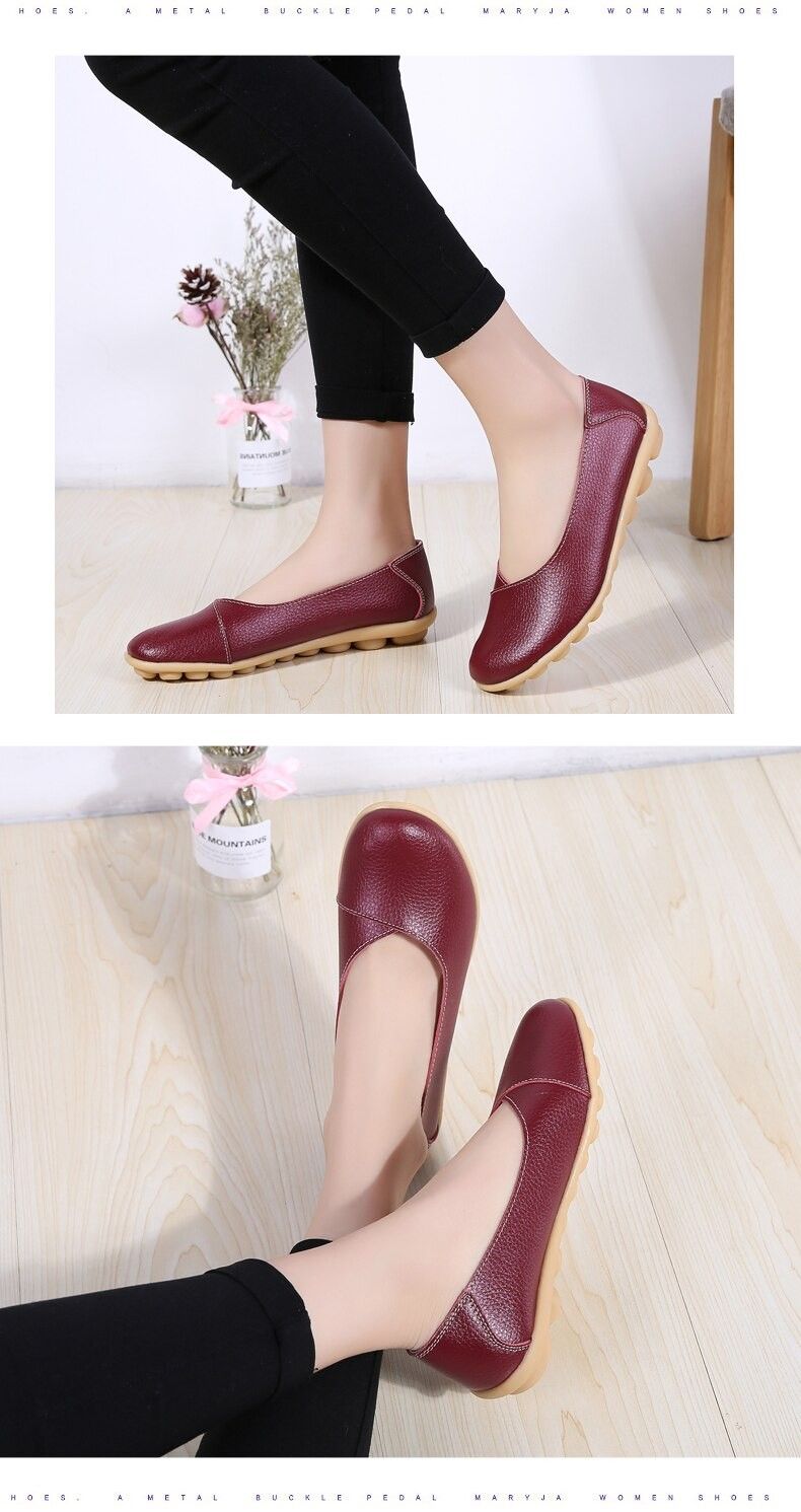 Women'S Ladies Female Woman Shoes Flats Mother Shoes Cow Genuine Leather Loafers Ballerina Non Slip On Zapatillas Woman Ballet