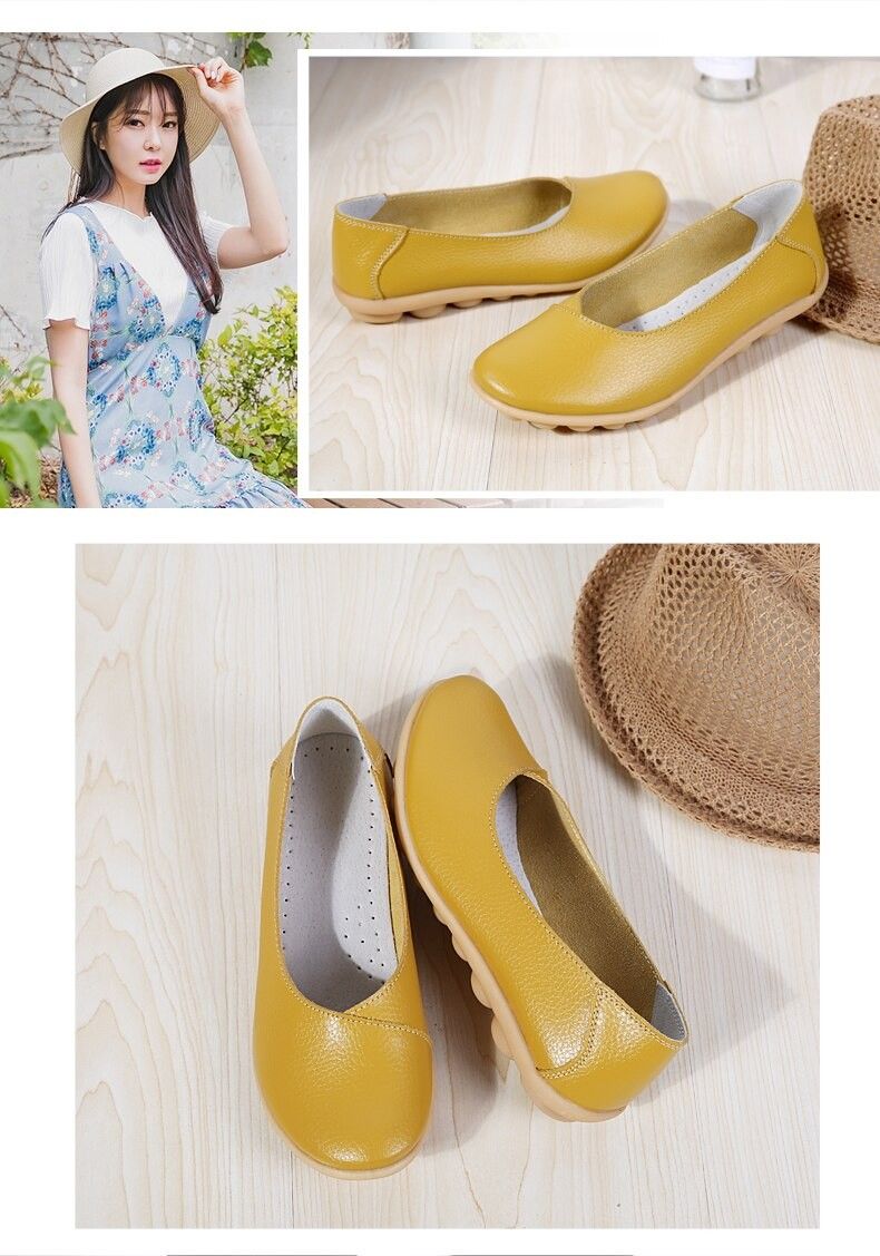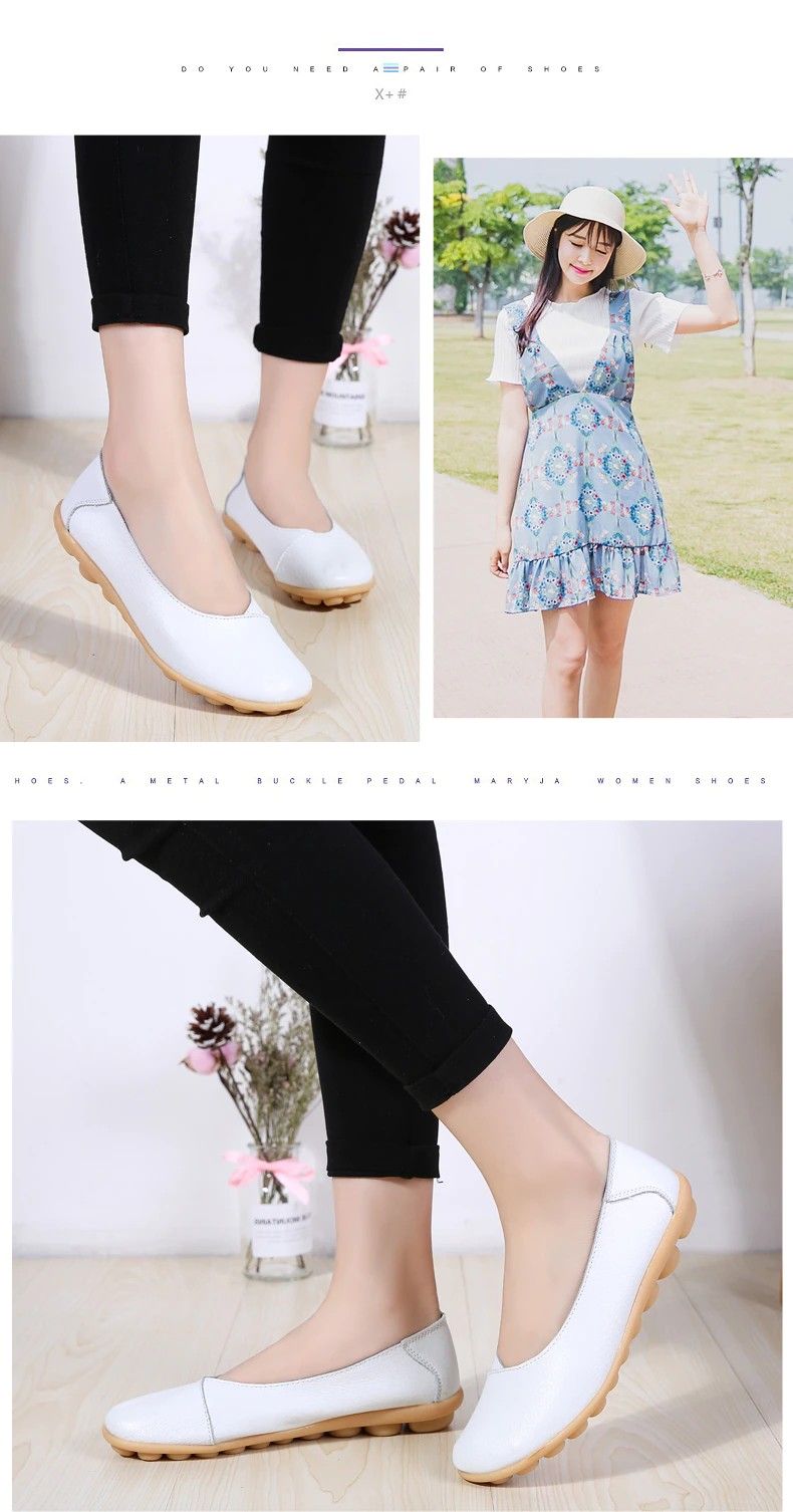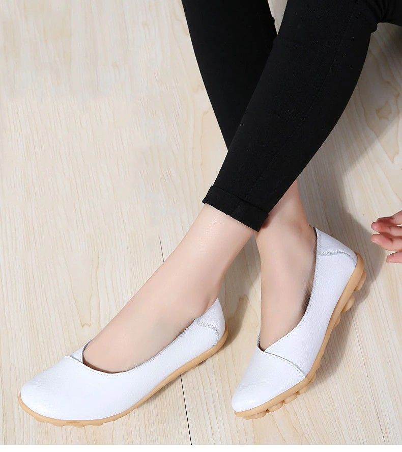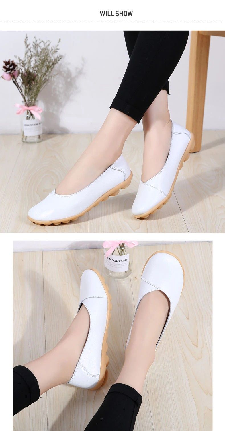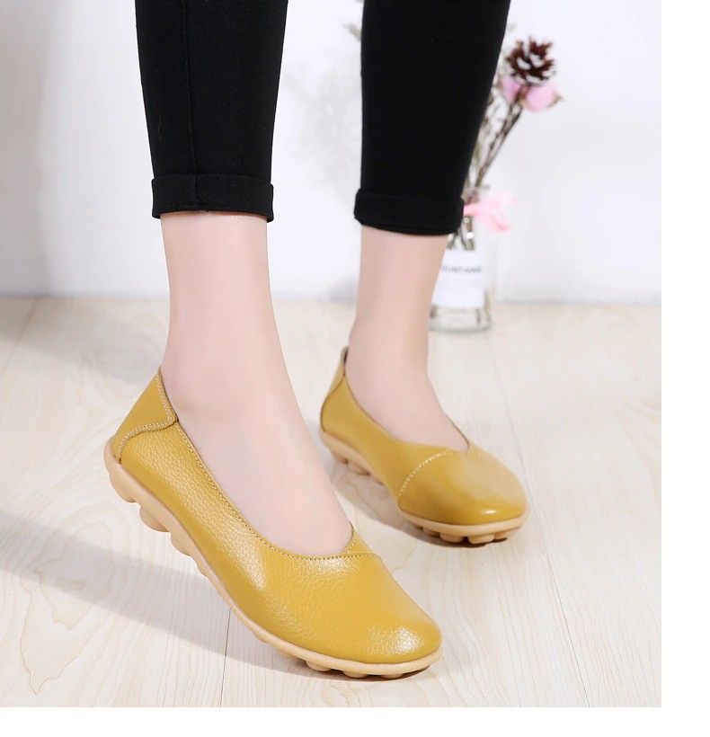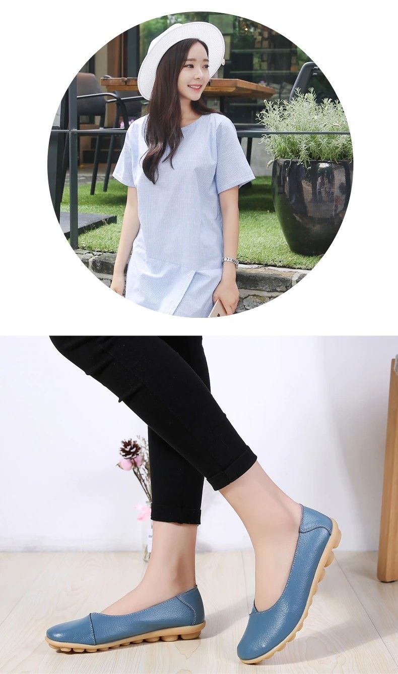 Women'S Ladies Female Woman Shoes Flats Mother Shoes Cow Genuine Leather Loafers Ballerina Non Slip On Zapatillas Woman Ballet