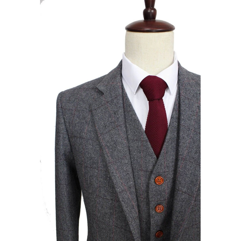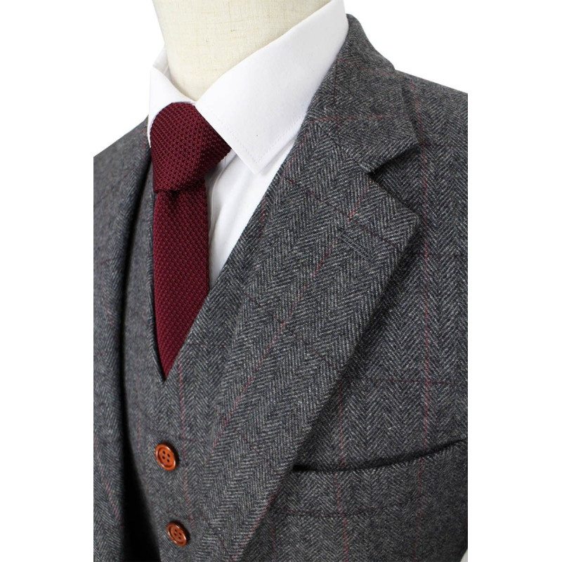 Part of our LIMITED EDITION 100% Wool cloth, this exceptionally high quality grey herringbone tweed suit is complemented by a maroonwindow pane over check. Made from our all new super240’s 100% wool & finished with a modern slim fit. Colour coded maroon lining for the inside jacket and waistcoat finishing the look perfectly. This is an absolutely stunning high end tweed