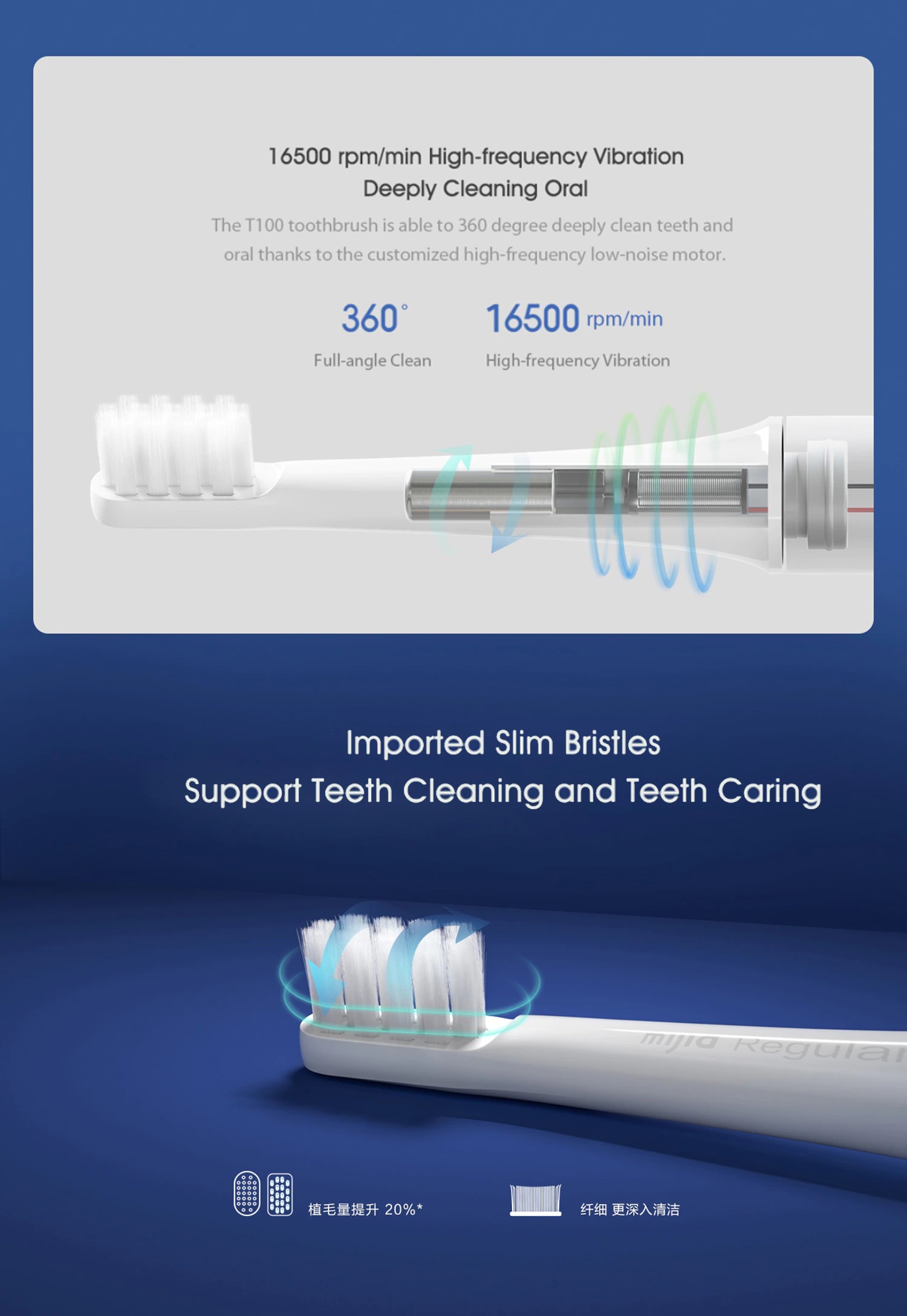 Xiaomi T100 Sonic Electric Toothbrush Cordless Rechargeable Toothbrush Ipx7 Waterproof Automatic Tooth Brush