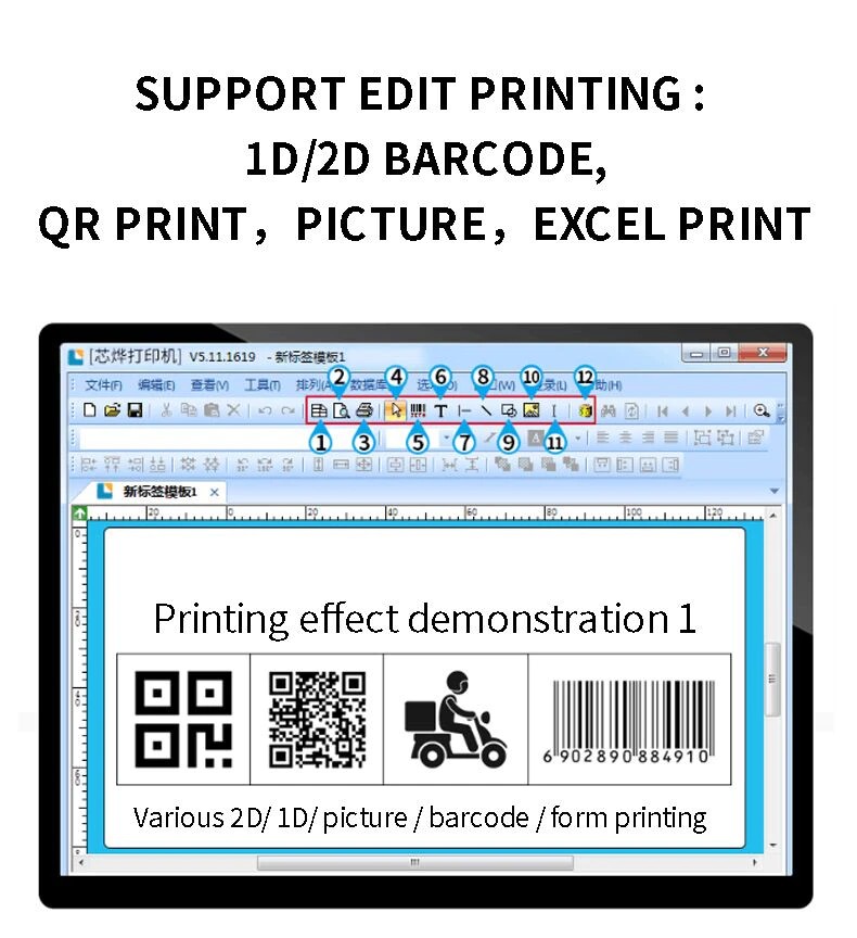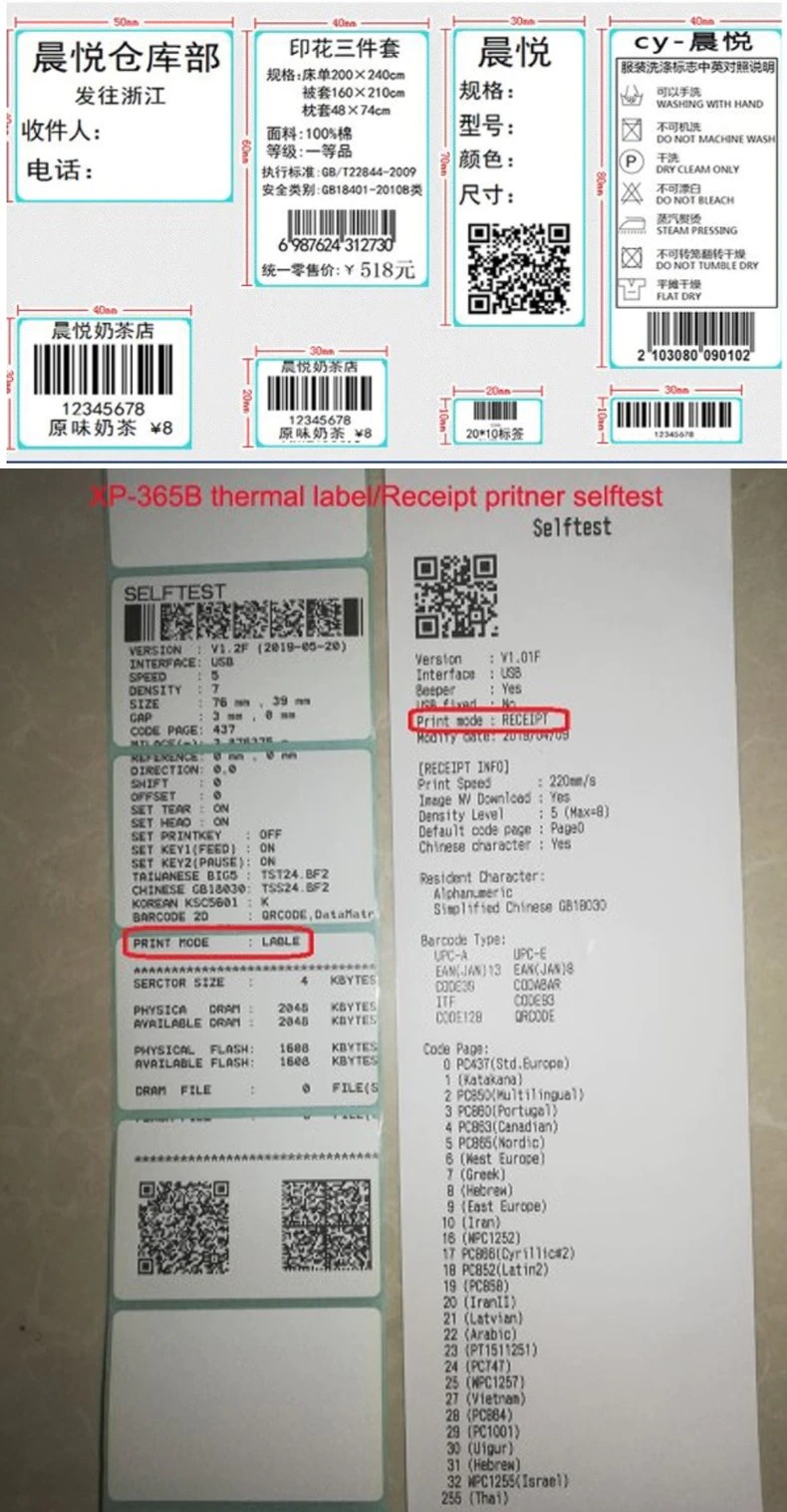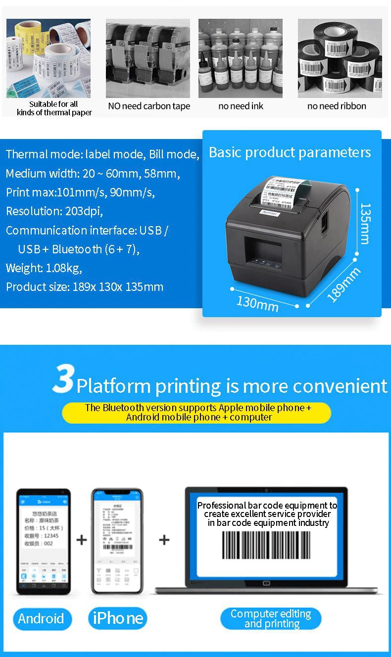 Remarque: ces imprimantes supportent à la fois l'étiquette imprimée et le reçu. Largeur d'impression sur 20-80mm.