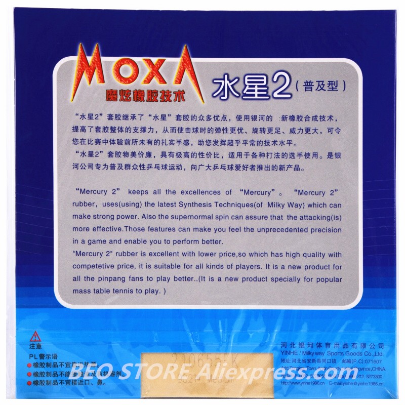 The " Mercury II " rubber keeps all the advantages of " Mercury". It uses the latest " MOXA" Synthesis Techniques to improve the holding power of the rubber. And the supernormal spin can make your attacks more effective and powerful. These features can make you feel the unprecedented precision in a game and enable you to perform better. "Mercury II " rubber is an excellent product at a low price. In order to let the common people play Ping-Pong well, our Yinhe Company introduces this new product to all the Ping-Pong fans. Spin: 7 Speed: 10 Hardness: Soft/Medium Type: Fast attack/loop