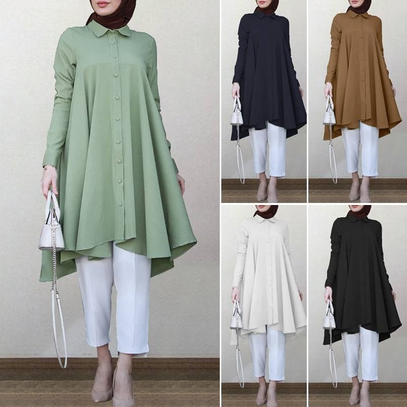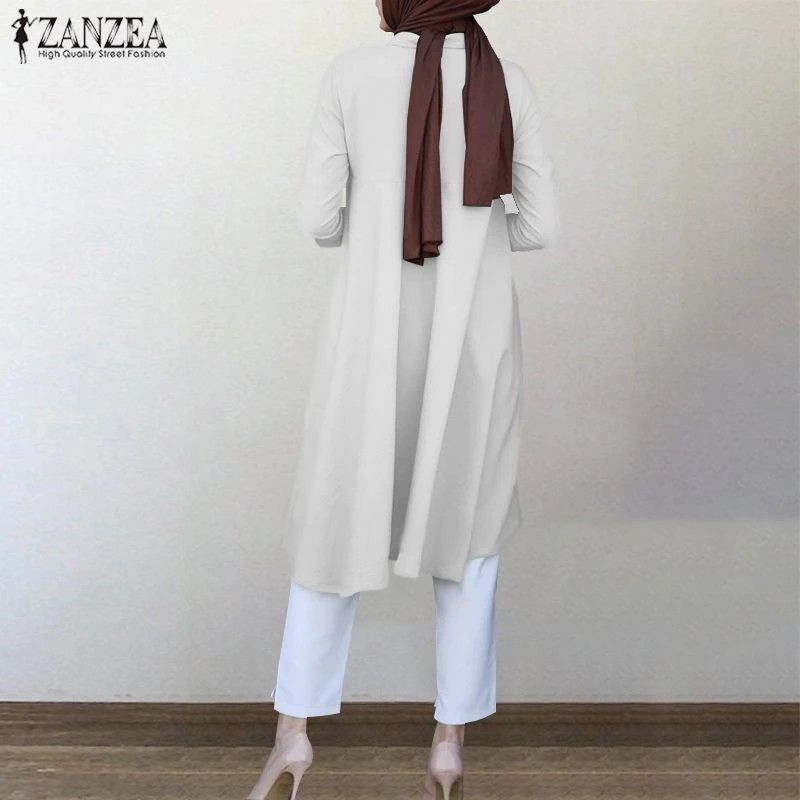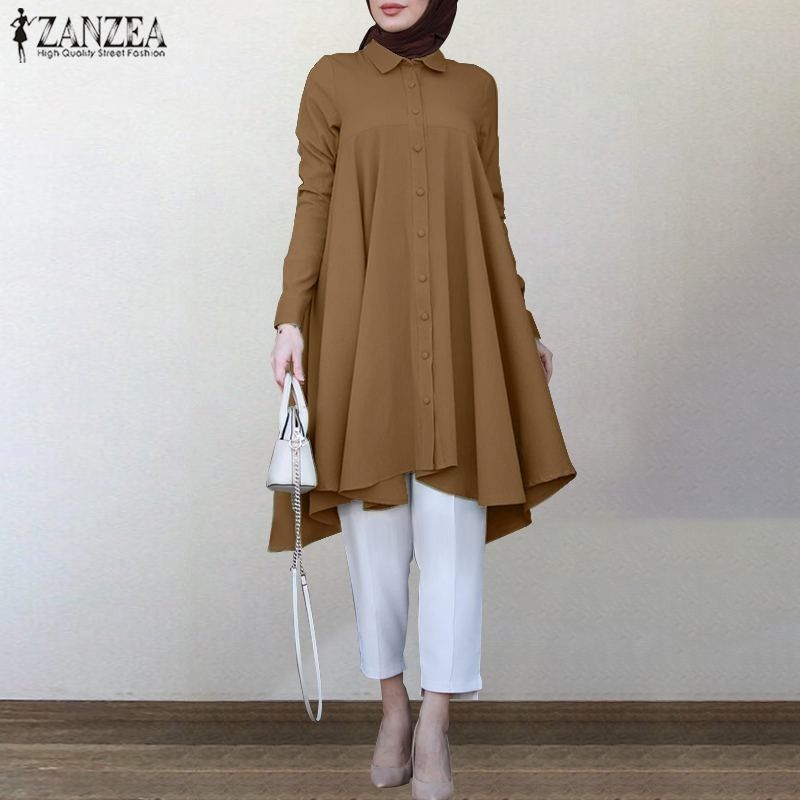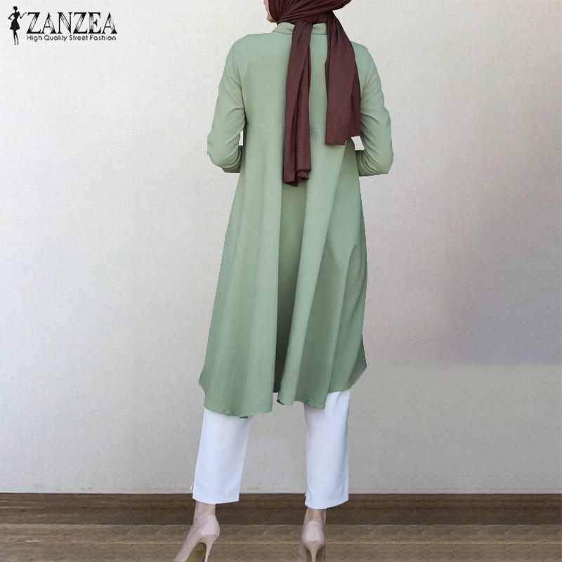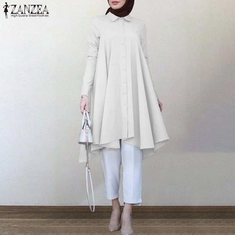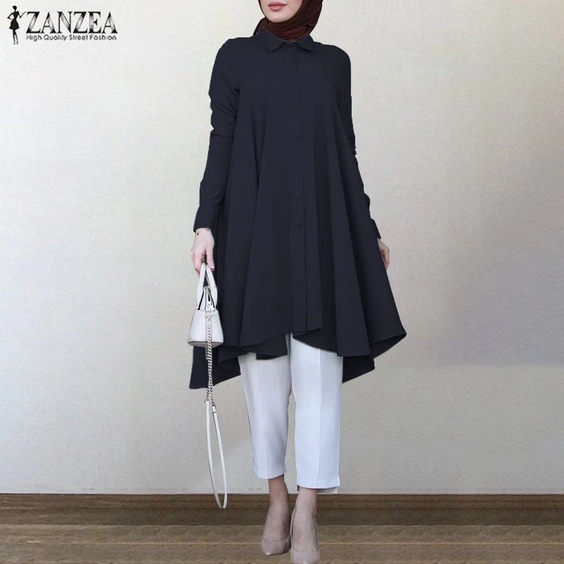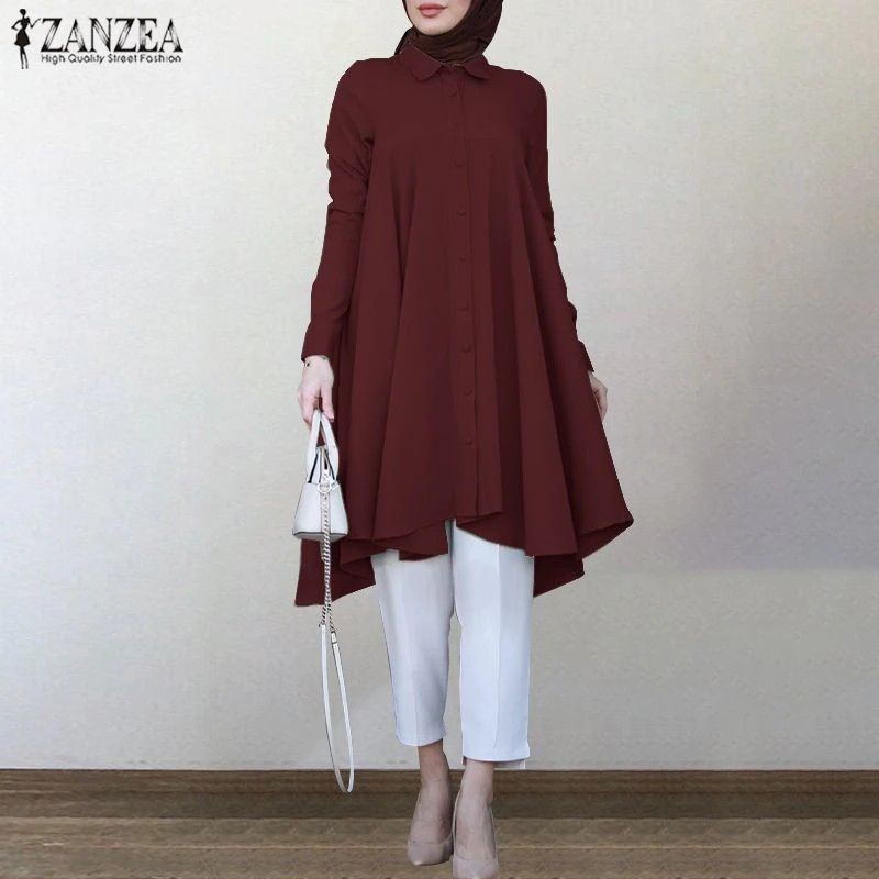 Zanzea Muslim Asymmetrical Shirts Women'S Autumn Blouse Newest Casual Retro Long Sleeve Turkish Shirts Solid Islam Clothing Robe