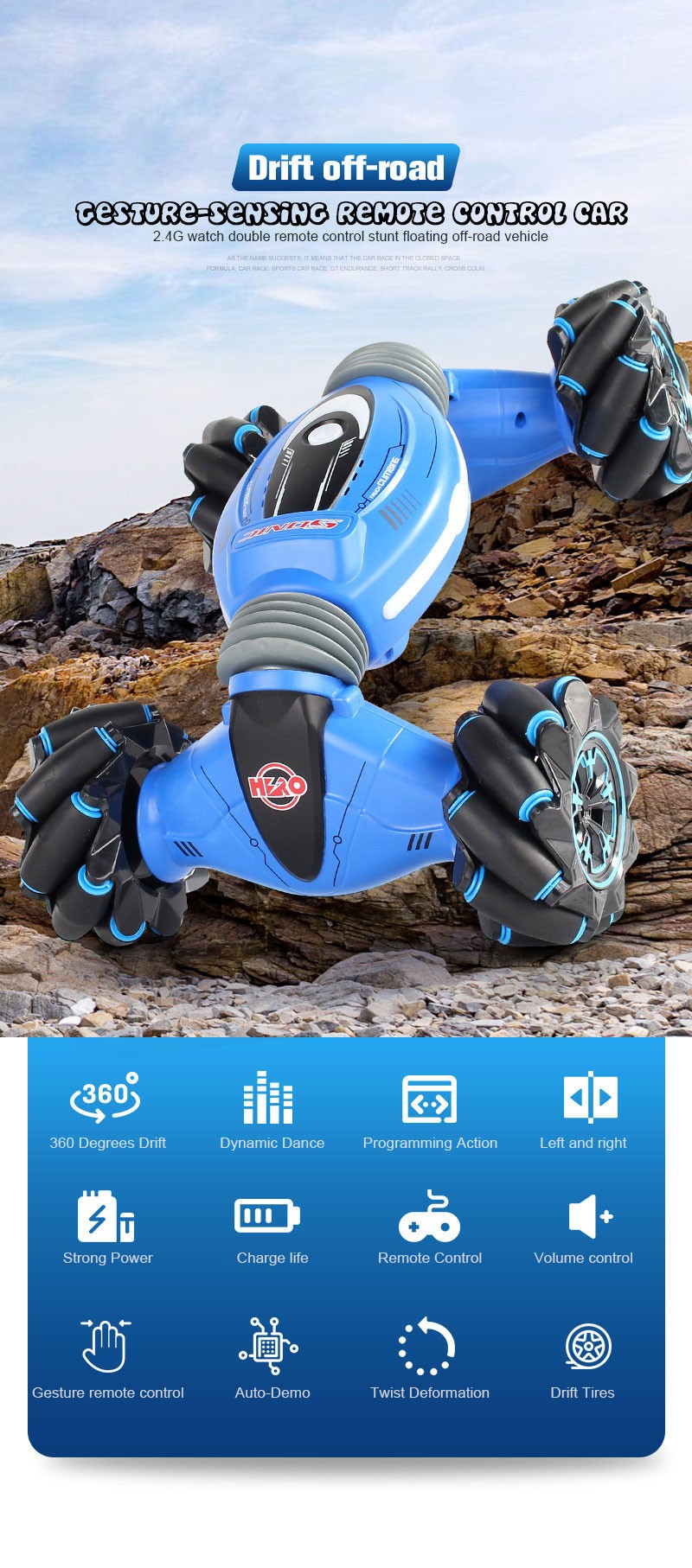 Gesture Sensing Stunt Remote Control Car Children's Light Light Music Twisting Car Deformation Climbing Off-road Vehicle Model